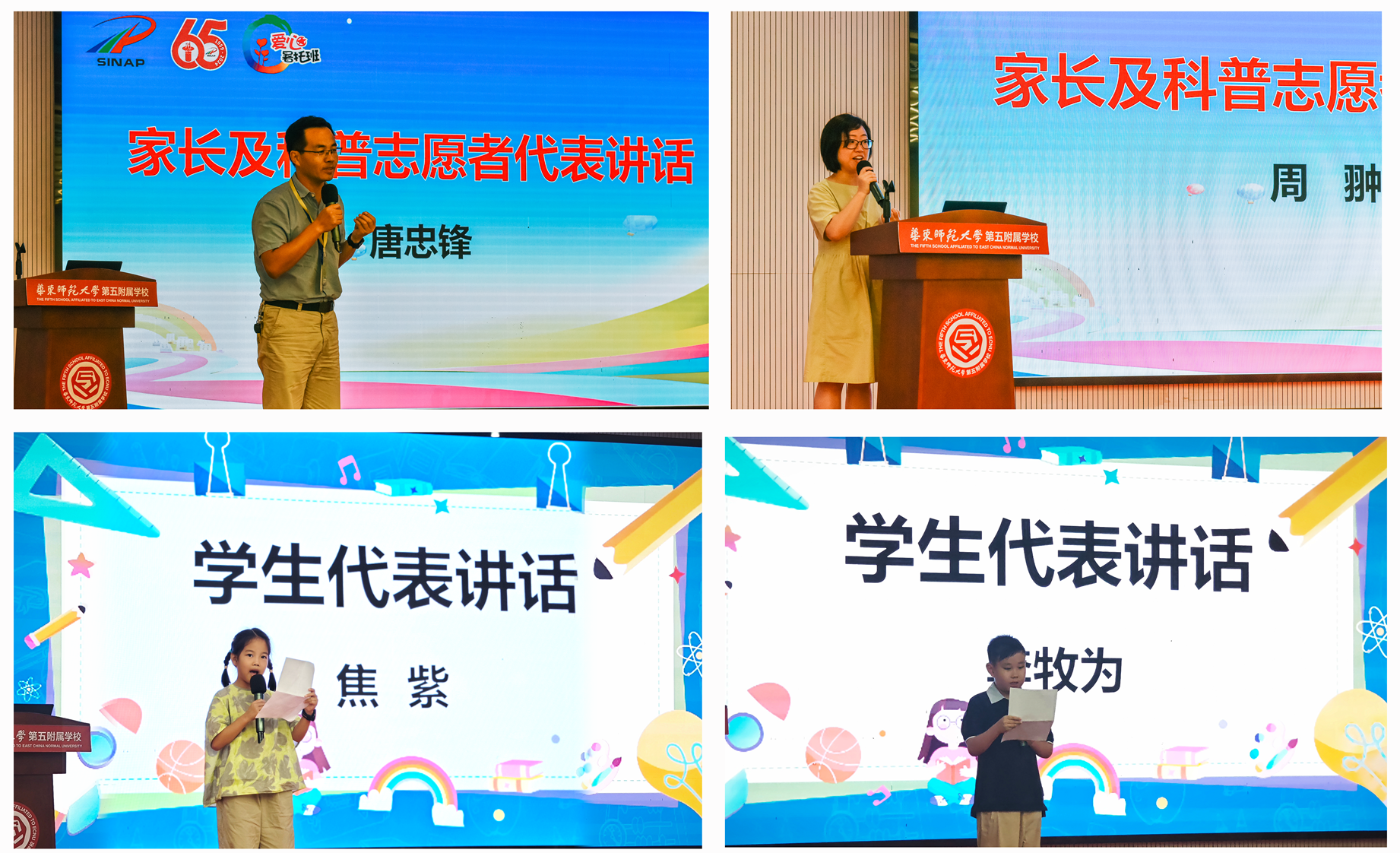 随后,唐忠锋和周翀研究员作为家长及科普志愿者代表发言,他们高度赞扬了暑托班的意义与价值。孩子们在托管期间不仅学到了丰富的科普知识,更在身心健康、社交能力等方面得到了全面提升。焦紫、李牧为两位小朋友作为暑托班学员代表发言,向爱心托班的举办致以了最诚挚的感谢。他们表示,在暑托班度过的快乐时光是年少时最为美好的回忆,在这里,不仅能够收获友谊和知识,还能度过难忘的、有意义的假期。