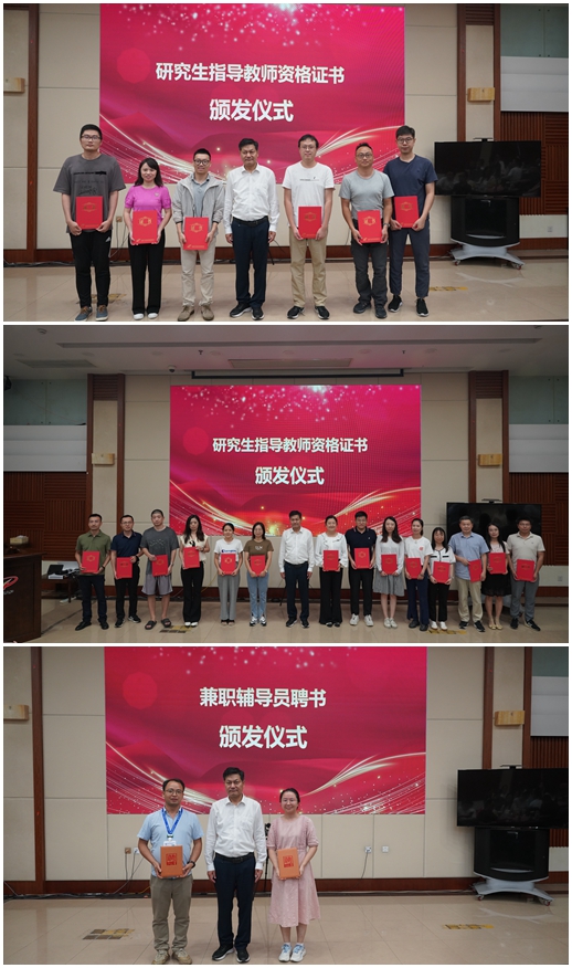 会上进行了新上岗研究生导师及辅导员聘任仪式,戴志敏为本年度新上岗导师代表颁及兼职辅导员代表颁发证书。