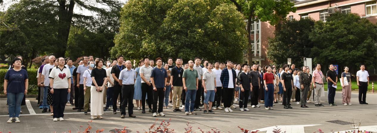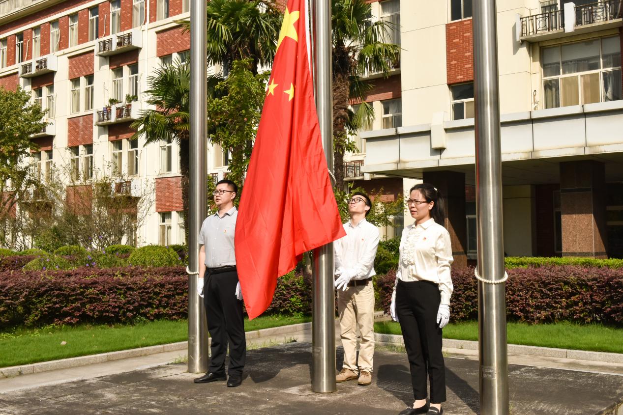 上午9时,升国旗仪式正式开始。伴随着雄壮激昂的《义勇军进行曲》,五星红旗冉冉升起、迎风飘扬,全体同志面向国旗庄严而立、放声高唱,深切表达了对伟大祖国的无比热爱和对科技事业的炽热情怀。