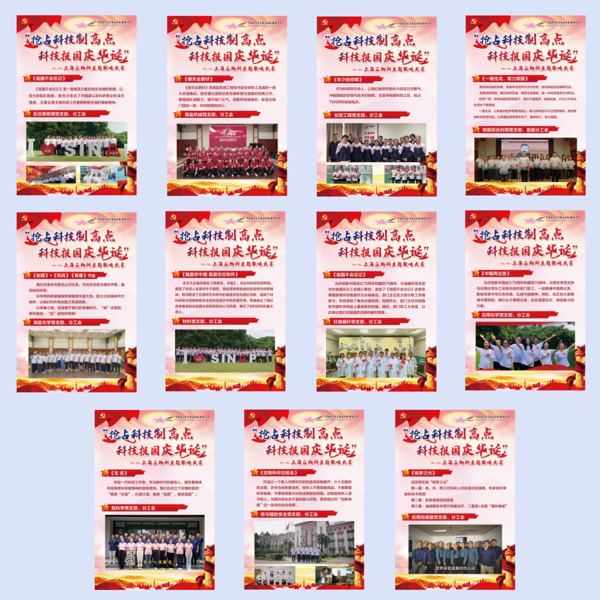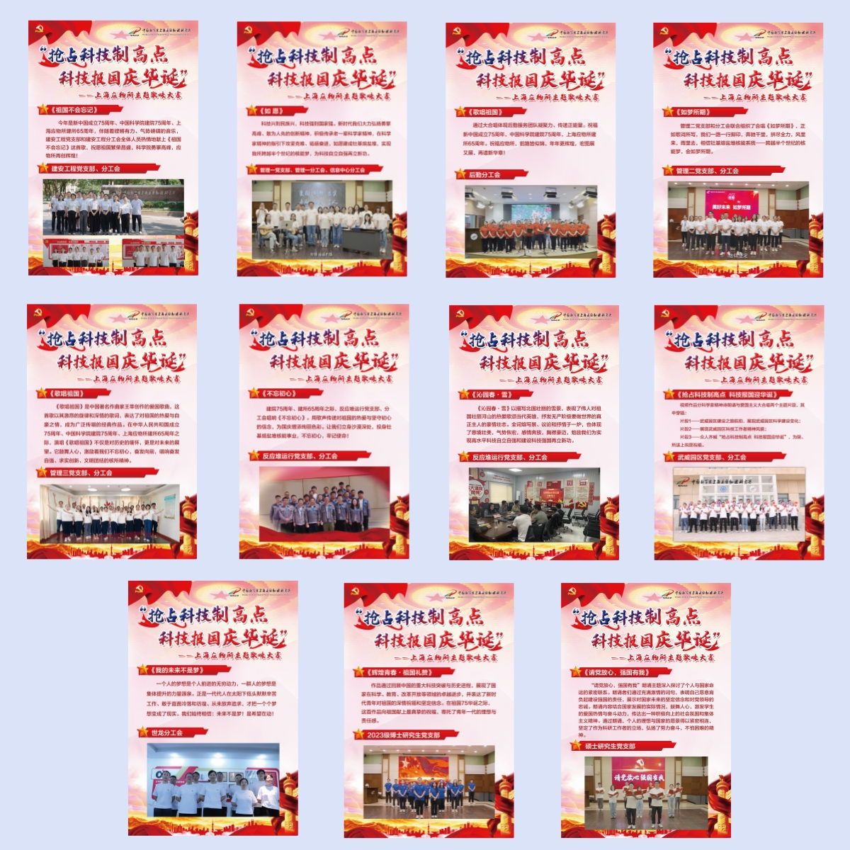 2024年10月16日上午,上海应物所在嘉定园区和武威园区分别设立会场,举办了一场特别的“抢占科技制高点 科技报国庆华诞”歌咏比赛作品品鉴会。