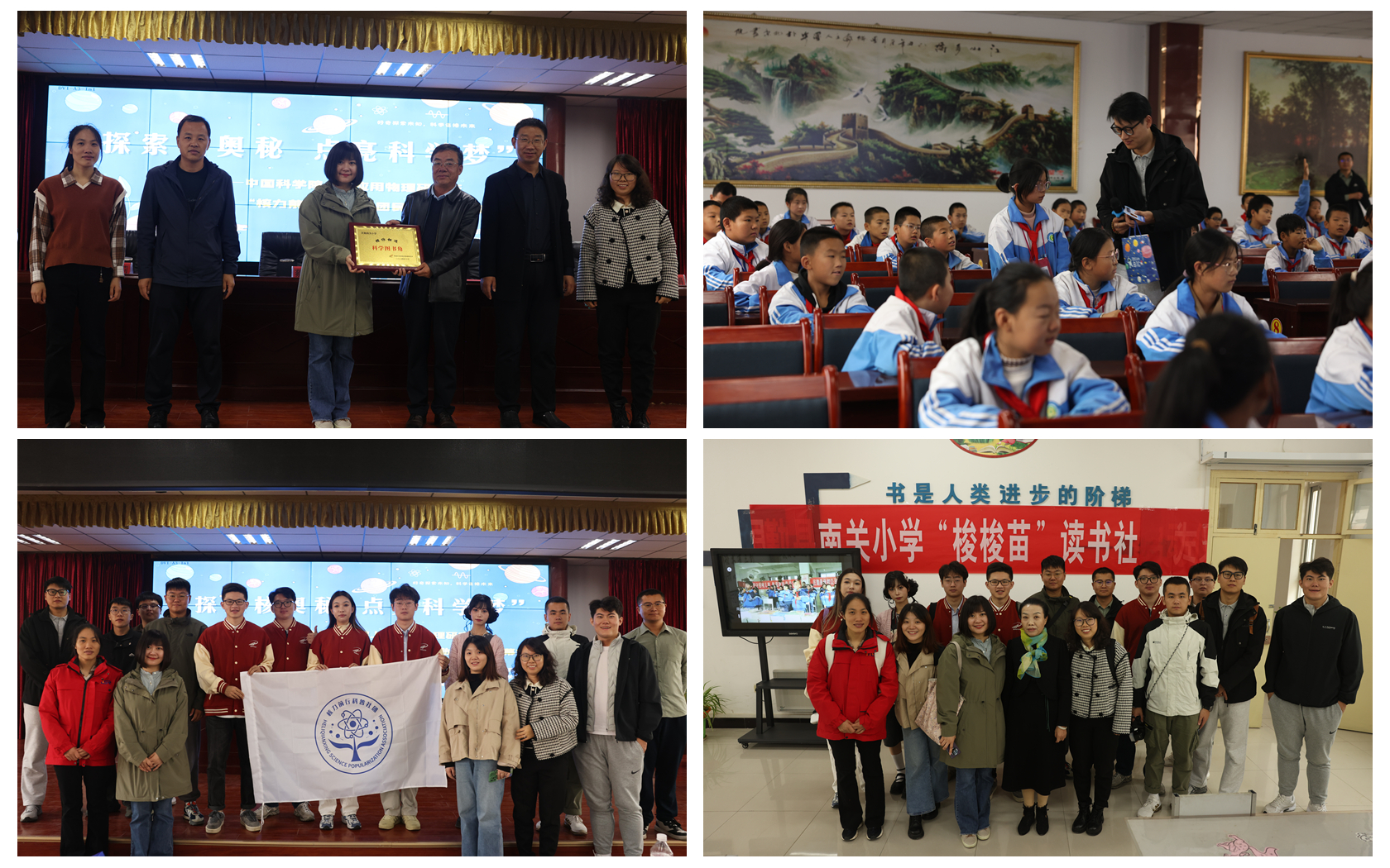 周怀忠和聂学民也在讲话中对上海应物所的支持表示感谢,并鼓励孩子们把握机会,勤奋学习,树立科学思维。活动中,上海应物所向南关小学捐赠了一批科学书籍,用于支持学校建设科学图书角,并参观了民勤南关小学的“梭梭苗读书社”,讨论了后续对孩子们的持续支持模式。随后,由在读研究生组成的科普社团成员管楠、梁文君、卜纪超、潘杨4位同学围绕纳米气泡核辐射、能量来源、钍等主题,用浅显易懂的语言和丰富多彩的展示方式,向孩子们介绍了科学的基本知识和原理,激发了孩子们对科学的浓厚兴趣。