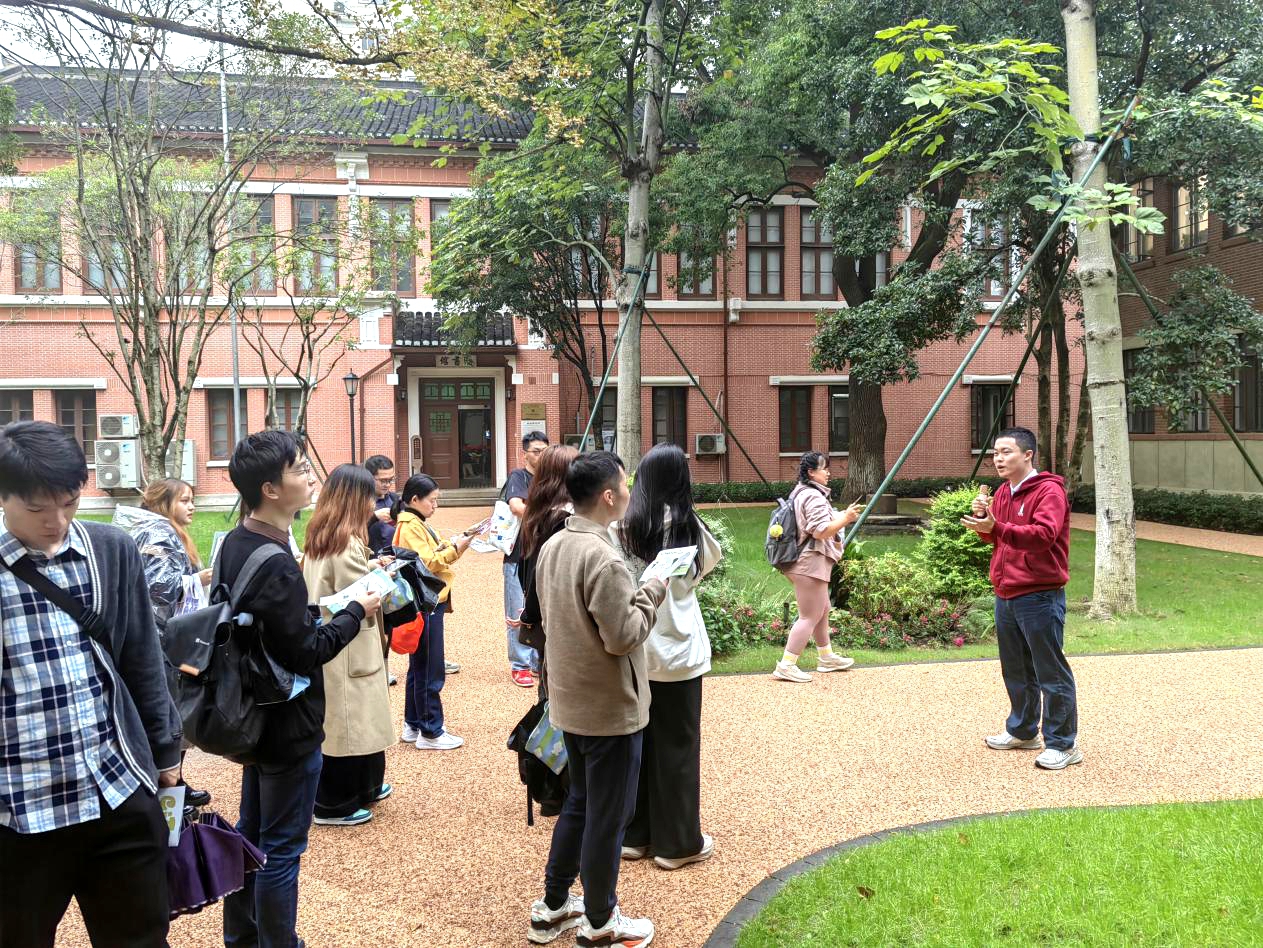 首先,研究生们在华东政法大学长宁校区参观了百年历史的“圣约翰大学历史建筑群”,同学们在参观之中品读红色故事、赓续红色基因、凝聚奋进力量。在40号楼大会堂,大家学习孙中山先生慷慨激昂的爱国演讲稿;交谊楼内的图像记载了人民解放军战士解放上海的珍贵历史镜头,展现了人民解放军的英勇无畏和顽强拼搏精神,以及人民群众的伟大力量。