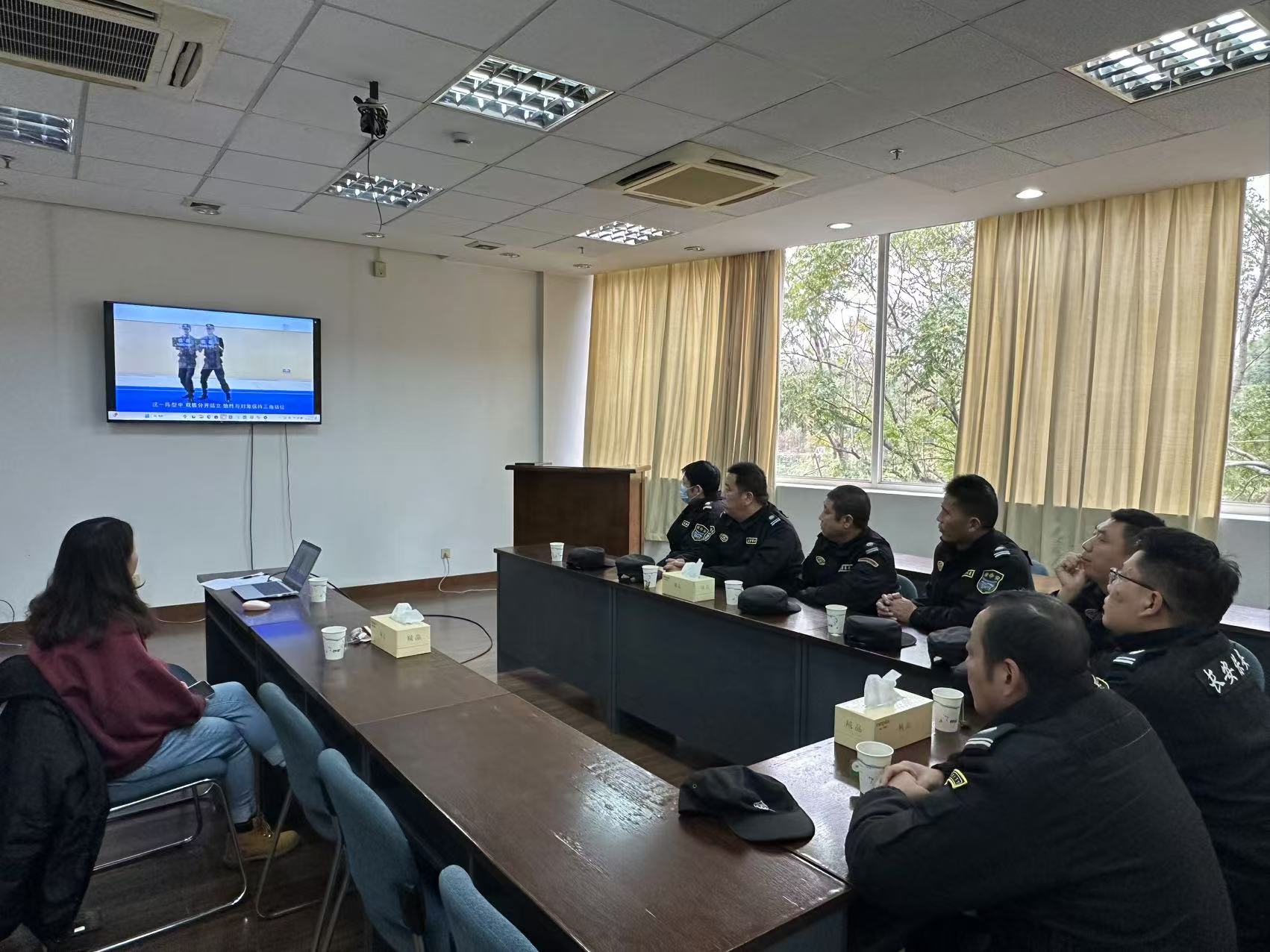 会上,综合办殷莺以《嘉定园区消防设备设施应急操作》为题,从消防控制室设备识别及操作、嘉定园区消防设备分布、火灾警报应急处置流程及消控室值班人员巡检范围与要求四个方面进行详细介绍,要求安保人员熟练掌握消防设备设施的操作方法及应急处置流程;会上播放了《突发事件应急处置培训示教片》,视频以校园和医院为例展示突发事件初期安保人员的应急处置措施,详细介绍了多对一技战法的战术队形,强调安保人员要及时发现、迅速处置突发事件,实现“1分钟自救、3分钟互救、5分钟增援到位”的目标。