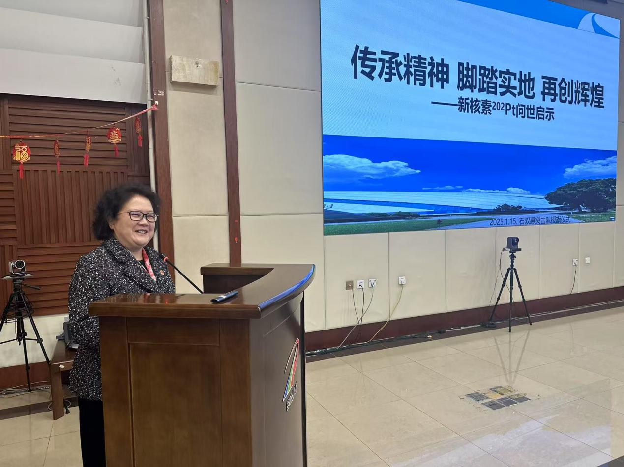 李燕作题为《传承精神 脚踏实地 再创辉煌——新核素202Pt问世启示》的报告,分享了新核素202Pt合成及鉴别的科研过程和石双惠研究员以大局为重的奋斗历程,勉励团队和全所上下要点燃激情、成就梦想、传承精神、脚踏实地,以实际行动为应物所新的辉煌篇章贡献力量。