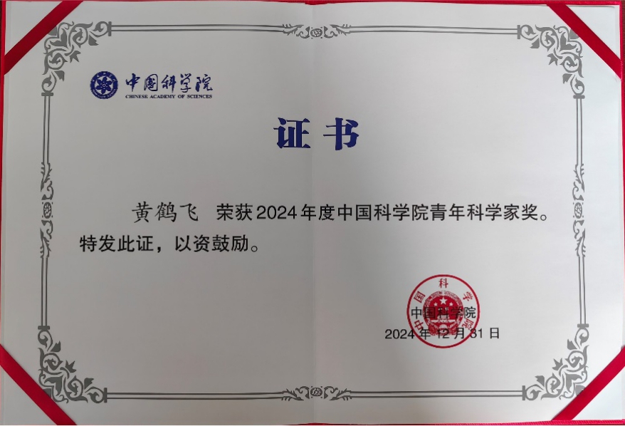 1月16日,中国科学院召开2025年度工作会议,会上颁发了2024年度中国科学院青年科学家奖,上海应用物理研究所黄鹤飞研究员获奖。