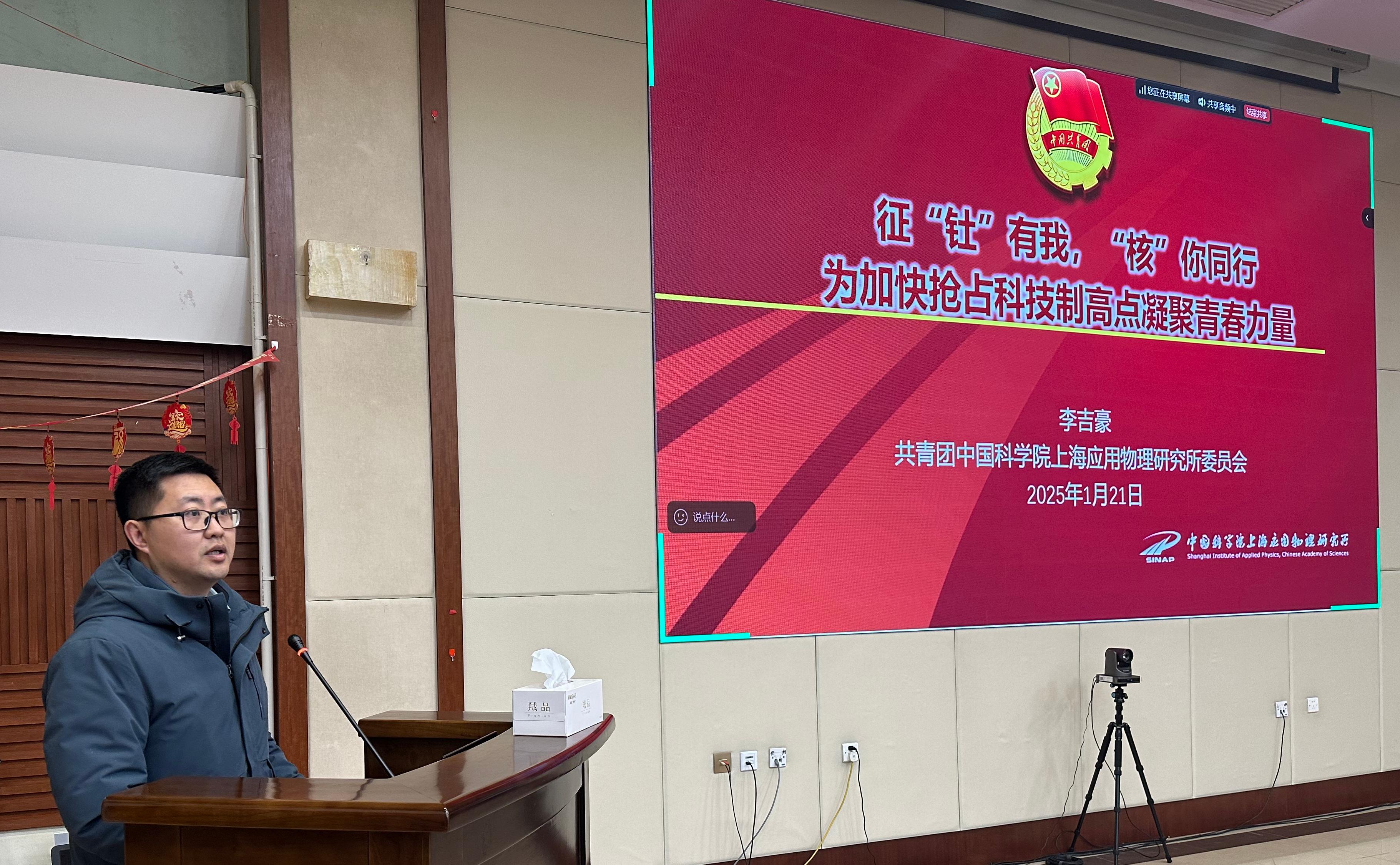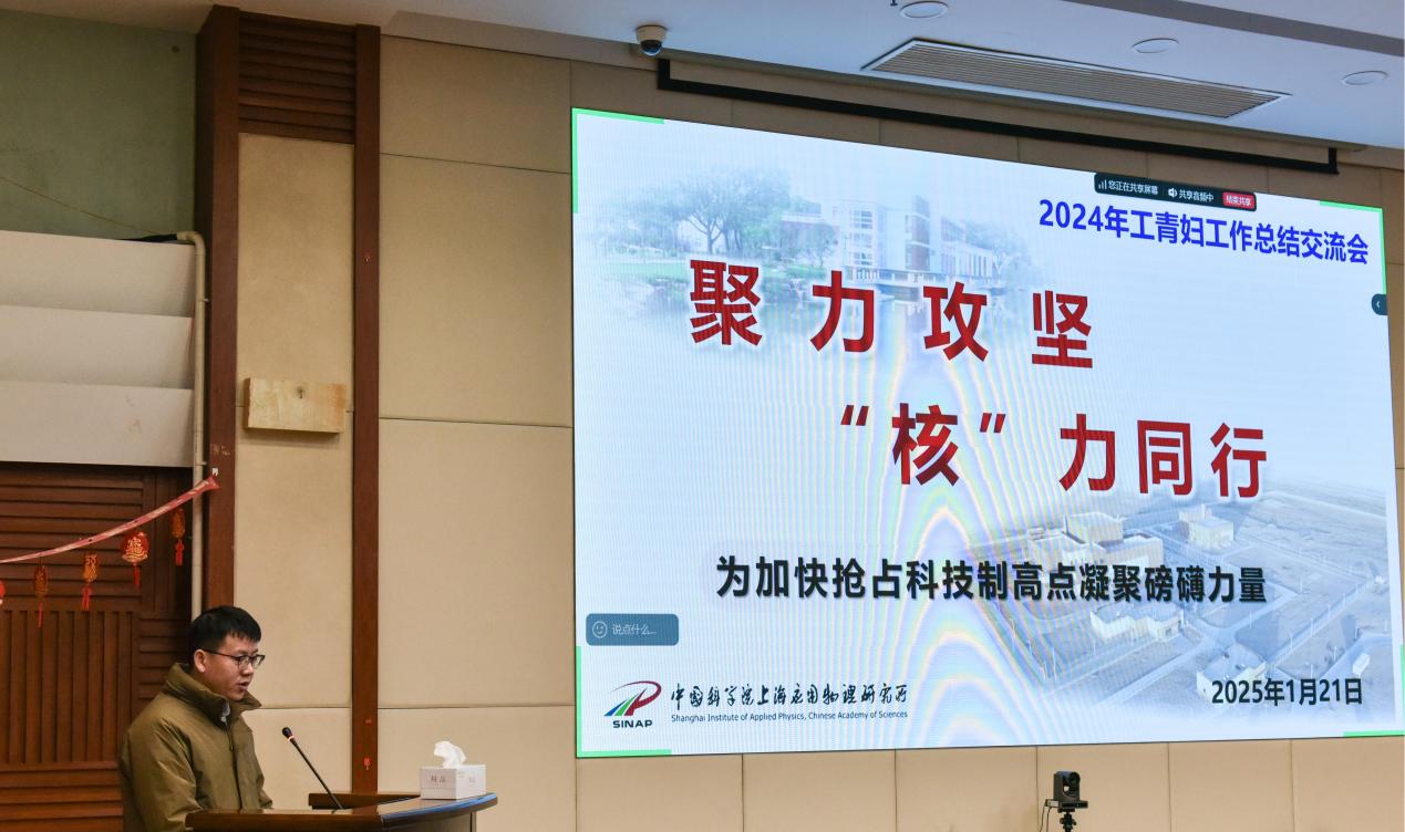 2025年1月21日,中国科学院上海应用物理研究所召开2024年度工青妇群团组织工作总结交流会,传达学习中国科学院2025年度工作会议精神,进一步总结2024年群团工作,研究谋划2025年工作思路,切实推动党群协力保障抢占科技制高点。所党委领导,党建办公室主任,工青妇班子成员以及各分工会主席、团支部书记、妇女小组组长等60余人参加会议。会议由党委副书记、纪委书记王茂华主持。