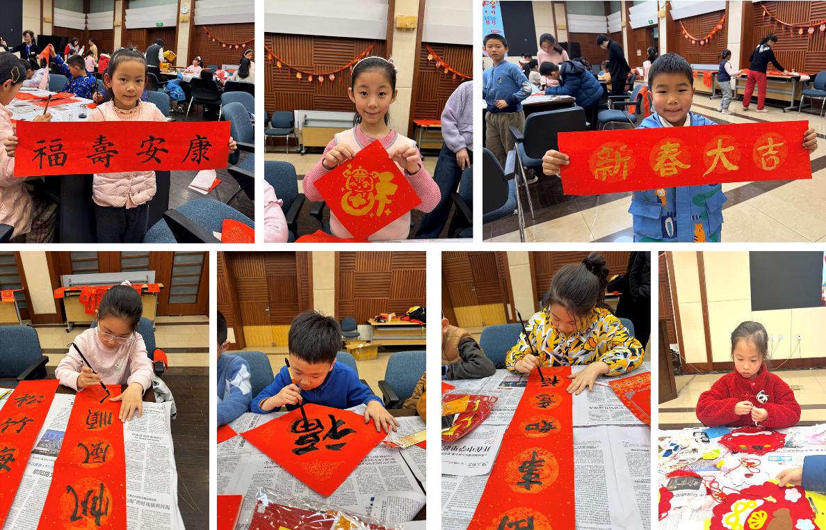 在“‘核’你一起 画蛇添福”活动中,小朋友进行了“写春联、画福字”活动。在写春联的环节,小朋友们拿起毛笔,蘸上墨汁,小心翼翼地在红纸上书写着寓意吉祥、祝福满满的春联。在画福字的环节,小朋友们更是发挥出了无限的创意。他们有的用彩笔勾勒出福字的轮廓,再填充上五彩斑斓的颜色;有的则用拓印的方式,将金色的福字以别致又新颖的方式呈现出来,让整个活动现场洋溢着浓浓的节日氛围。整个活动现场充满了欢声笑语,小朋友们不仅学到了传统文化知识,还通过亲手创作,感受到传统文化的魅力。