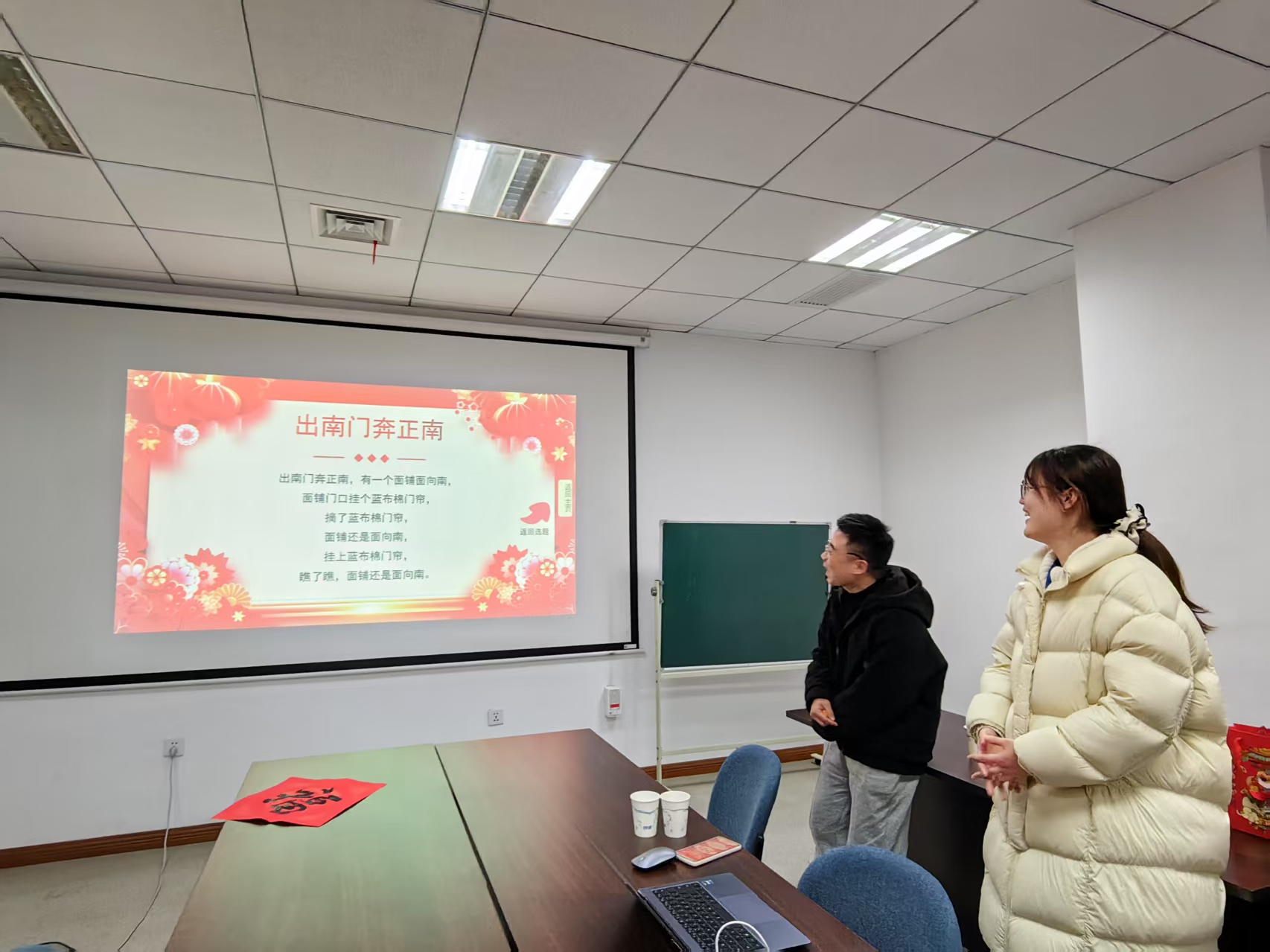 在“迎新春”活动环节,支部精心设置了写“福”迎新、“灯谜猜猜”、绕口令、报歌名等活动。全体人员积极参与,现场欢声笑语,墨香阵阵,一个个饱含神韵的“福”字,寄予了大家对未来美好生活的新期许。