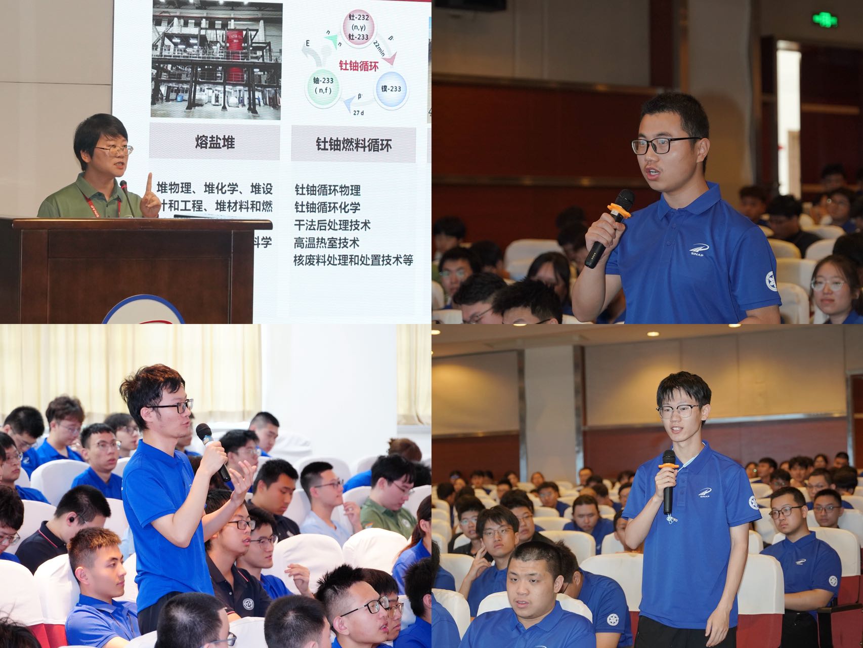 为促进营员们更深入地了解上海应物所各学科前沿动态,10位研究员带来了精彩的专题学术报告。熔盐堆物理热工教研室郭威研究员、熔盐堆工程与技术教研室李志军研究员、辐射防护与氚工程教研室刘卫研究员、先进能源存储和转换技术教研室刘瑶研究员、放射化学与辐射化学教研室张岚研究员、核能材料科学与技术教研室叶祥熙研究员、应用加速器教研组李德明研究员、加速器物理与技术教研室邓海啸研究员、光子科学与技术教研室高兴宇研究员、同步辐射前沿应用教研室朱倍恩研究员分别围绕《钍基熔盐堆的核热产生、传输与应用》《助力熔盐堆从图纸走向现实——熔盐工程科学》《固若金汤、点石成金——辐射防护与氚工程教研室》《氢能与储能进展》《放射化学与辐射化学学科特色与前景》《身怀“材”华,你“核”以堪?》《粒子加速器在核能科学、工农业与材料科学、生命健康等领域的应用》《加速器科学与技术》《上海光源及其应用》《“开眼”看催化,理论计算在原位催化研究中的作用》为题作了精彩报告,并与营员们进行了热烈的交流。通过互动交流,营员们不仅拓宽了学术视野,感受了创新研究的独特魅力,还在与专家的思想碰撞中,进一步明确了自己的学术兴趣点和未来的深造方向。