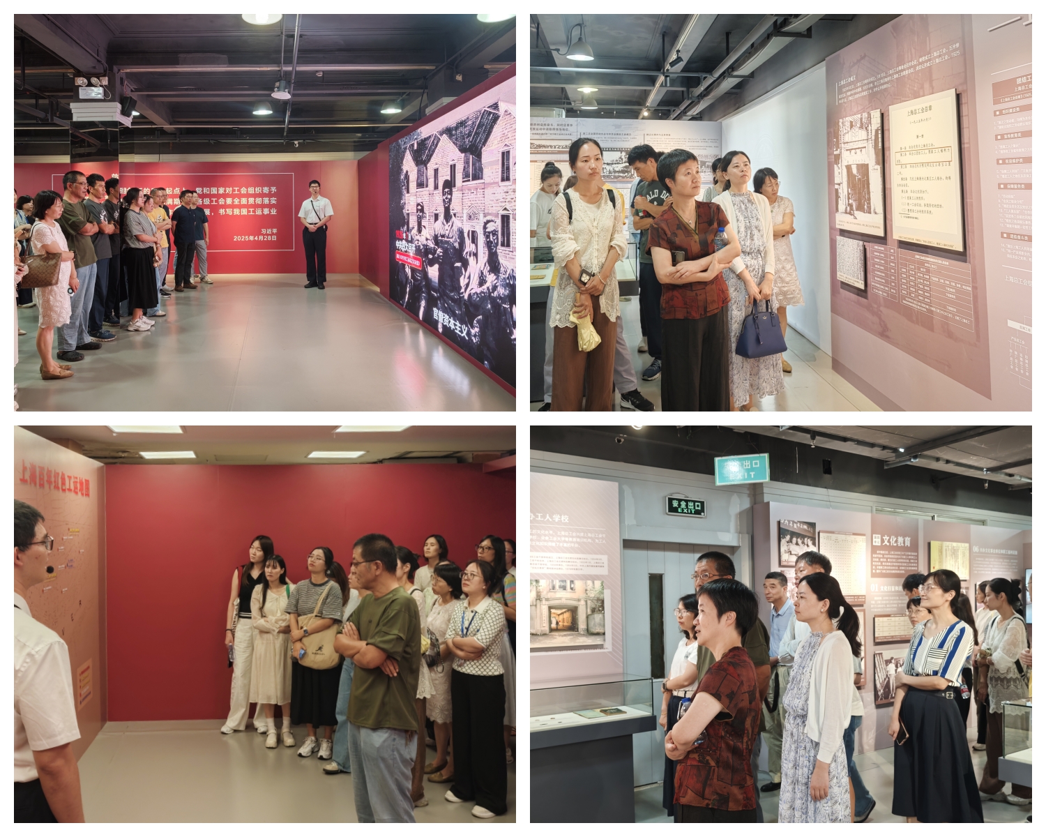 在学习环节,两所学员前往上海市工人文化宫参观“永远跟党走、奋进新征程、建功新时代”上海工会发展历程展。展厅内,一幅幅泛黄的历史照片、一件件古朴的实物展品,生动再现了上海工会百年发展脉络。学员们认真聆听讲解,全面学习了上海工会在党的领导下团结带领广大职工艰苦奋斗的光辉历史,进一步坚定了“永远跟党走”的信念决心。