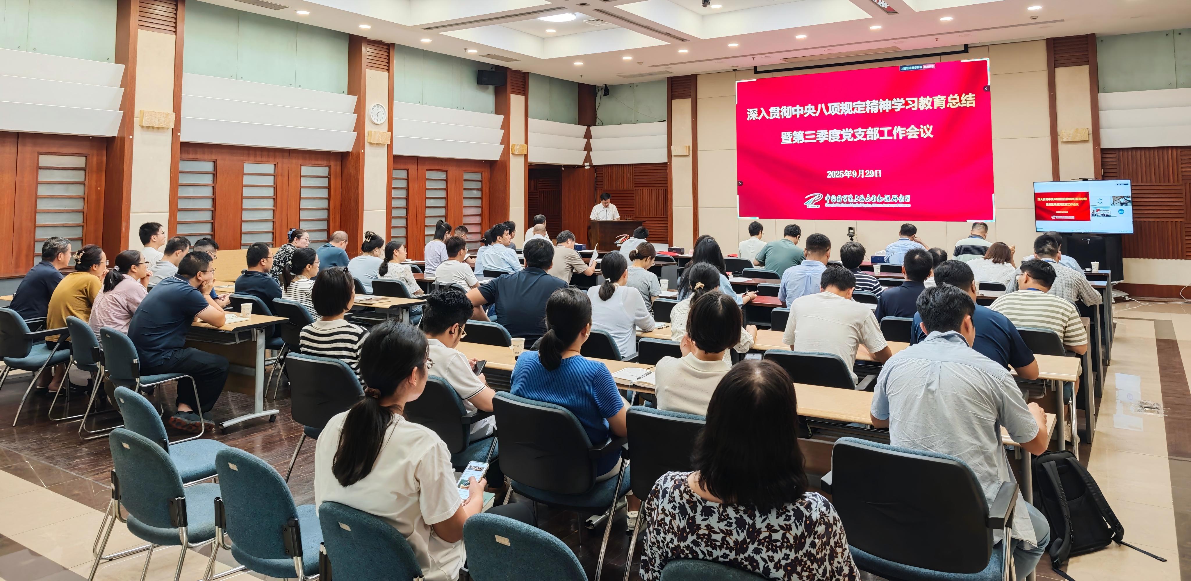 9月29日下午,中国科学院上海应用物理研究所召开深入贯彻中央八项规定精神学习教育总结大会暨第三季度党支部工作会议。党委委员、纪委委员、党建办主任及全体支委等70余人参加会议。会议由党委副书记、纪委书记王茂华主持。