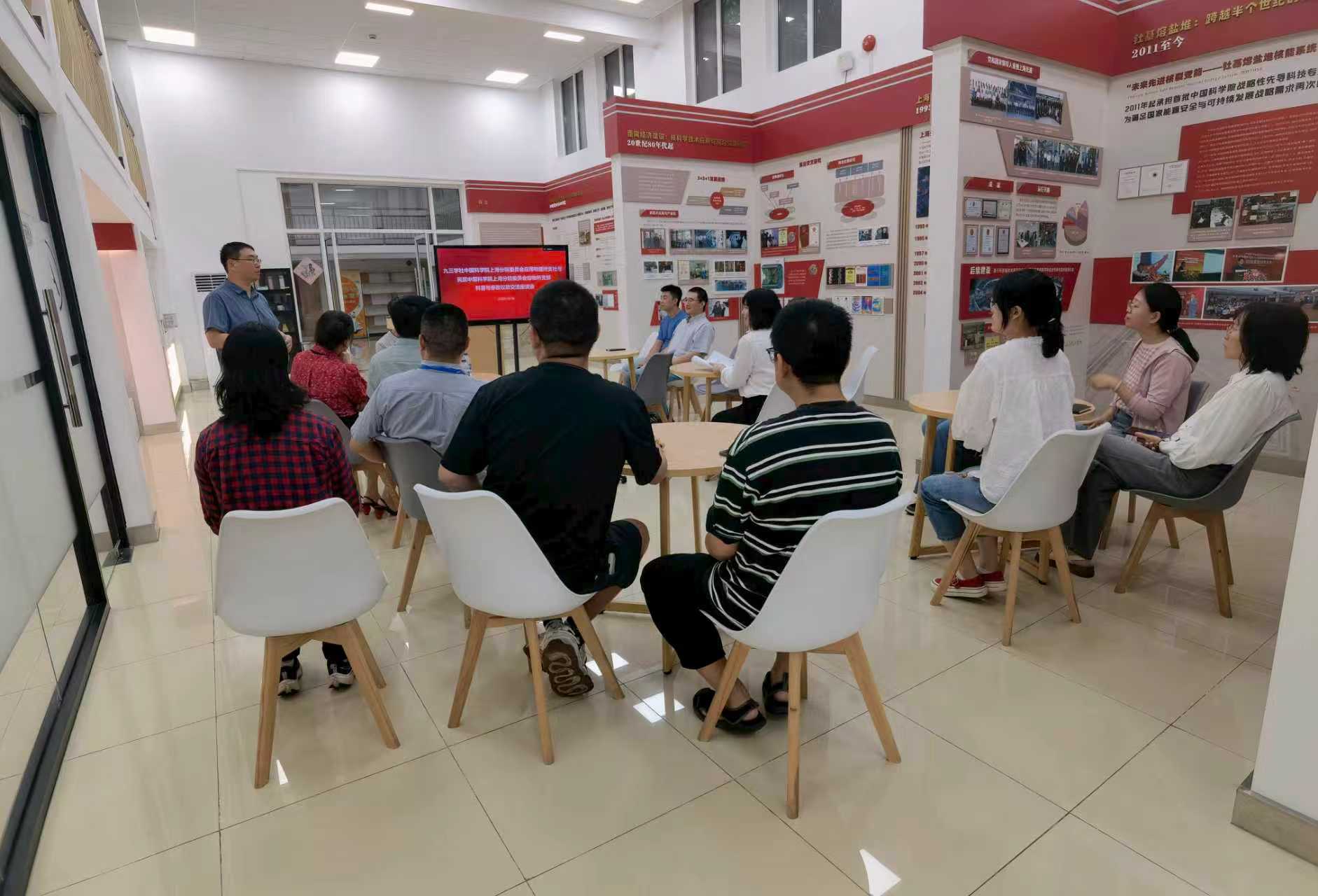 2025年10月16日下午,九三学社中国科学院上海分院委员会应物所支社与民盟中国科学院上海分院委员会应物所支部在上海应物所嘉定园区所史馆会议室联合举办科普与参政议政交流座谈会。会议邀请了九三学社上海文化委员会委员、秘书长,科普专委会委员张早女士作交流分享。上海应物所党委副书记、纪委书记王茂华出席会议,两个民主党派的在职人员、积极分子,以及研究所党建办、综合办相关人员20余人参加座谈。会议由九三学社应物所支社主任委员钱渊主持。