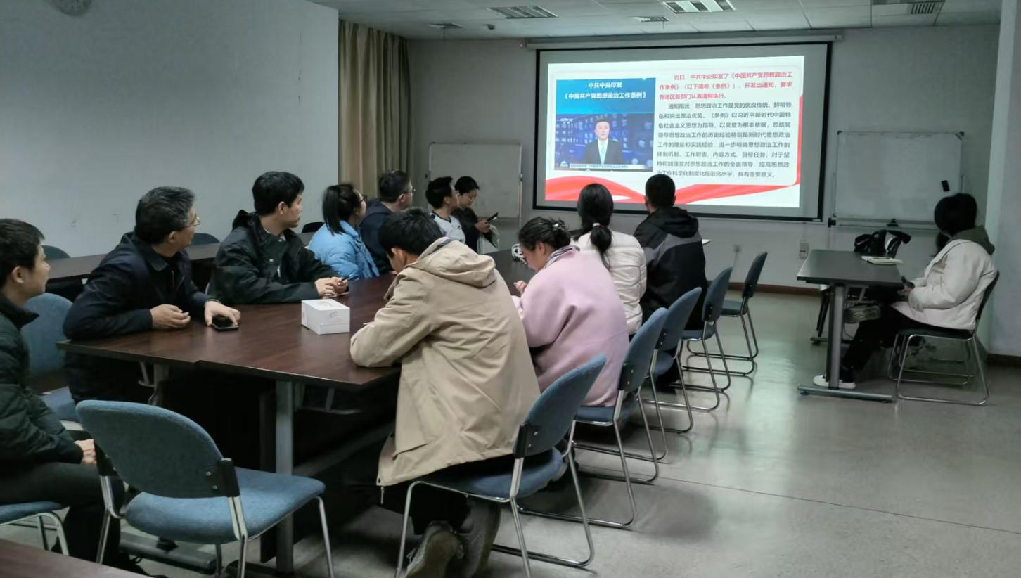 在集中学习环节,支部副书记韩建龙同志领学了《中国共产党思想政治工作条例》。通过学习,党员同志们深刻认识到,《条例》是我们党历史上第一部关于思想政治工作的统领性、综合性主干法规,是新时代做好思想政治工作的根本遵循。大家表示,必须从政治和全局高度把握思想政治工作的极端重要性,紧密结合科技创新与工程实践的实际,扎实做好《条例》的学习宣传和贯彻落实工作。