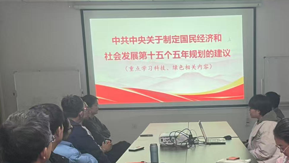 随后,入党积极分子黄丽同志带领与会人员学习了党的二十届四中全会精神,重点围绕“加快建设科技强国”等方面进行了梳理与解读。入党积极分子周文同志领学了《中共中央关于制定国民经济和社会发展第十五个五年规划的建议》,结合科技自立自强的战略部署,阐述了未来五年国家发展的方向与重点。