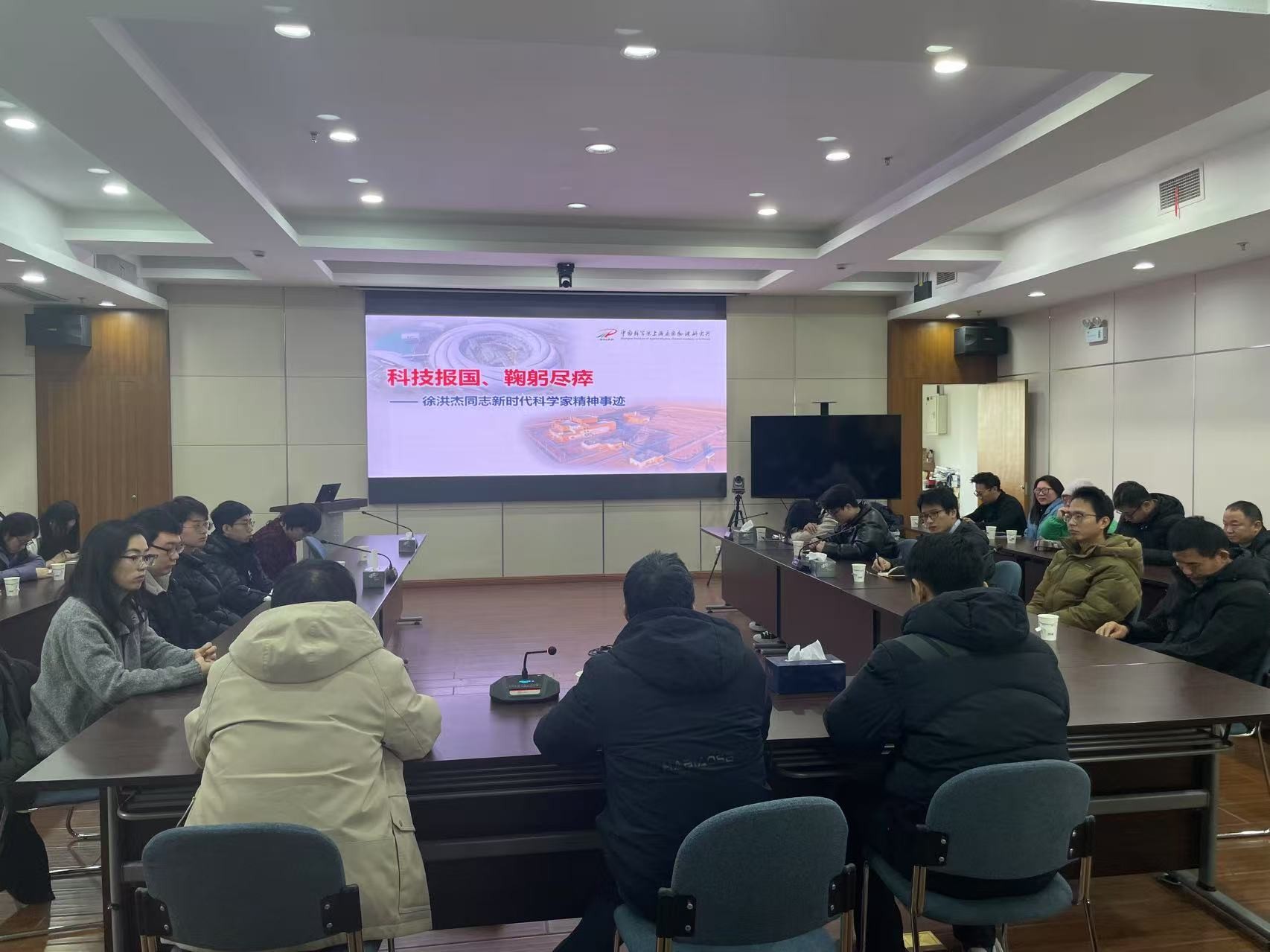 会议首先由党支部副书记韩建龙同志作题为《科技报国、鞠躬尽瘁》的专题报告,带领全体与会人员深入学习了徐洪杰同志践行新时代科学家精神的先进事迹。通过回顾徐洪杰同志从青年成长到投身科研与工程建设的历程,大家深刻感受到一名优秀科技工作者所具备的坚定信念、执着追求和奉献精神。从主持建成“上海光源”这一世界级大科学装置,到领衔推进代表核能科技前沿的“钍基熔盐堆”研发,徐洪杰同志以毕生心血铸就两项国之重器,直至生命最后一刻,生动诠释了新时代科学家精神的内涵。报告号召部门全体人员在科技攻关中,自觉以徐洪杰同志的报国信念为动力,积极传承与践行科学家精神。