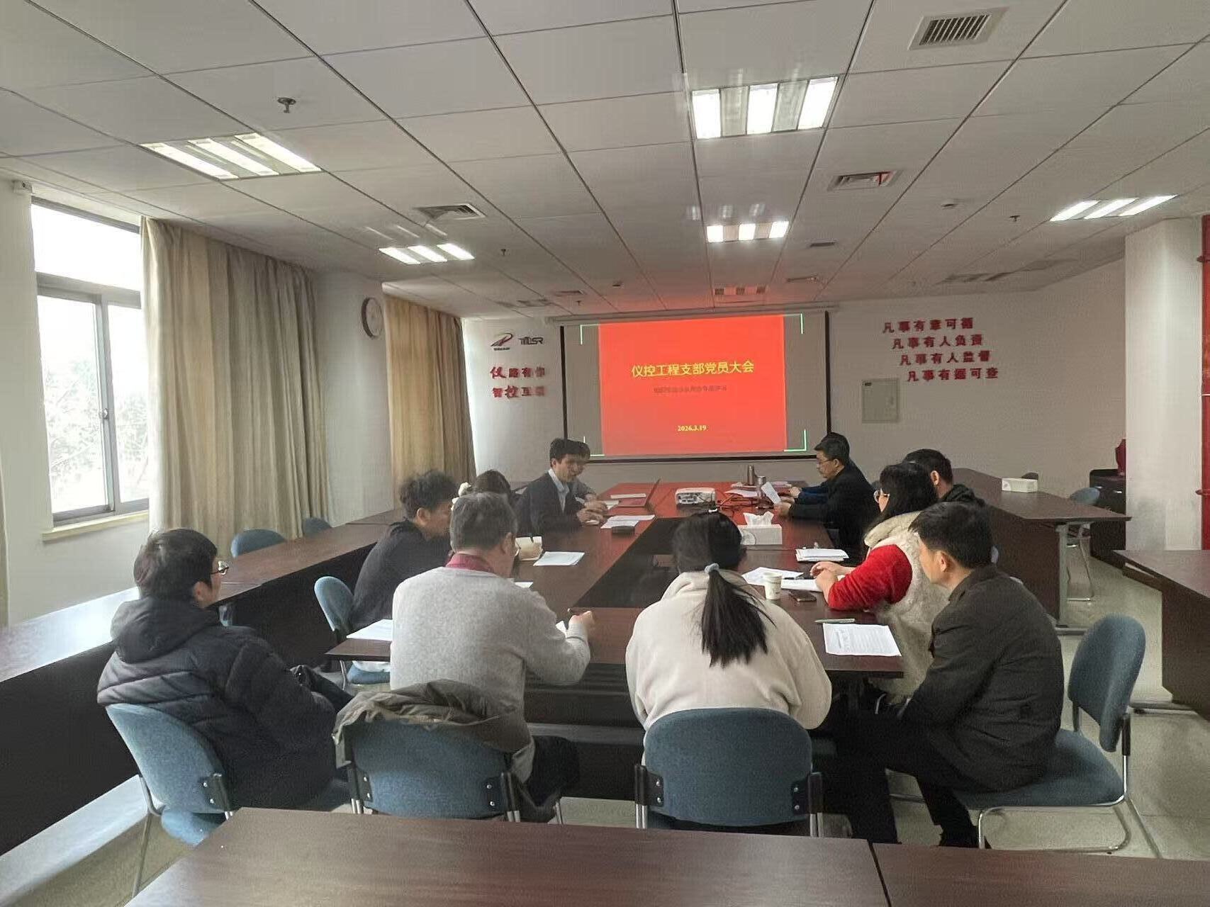 2026年3月19日,仪控工程党支部召开年度党员组织生活会,开展民主评议党员暨“两会精神”专题学习活动。戴志敏所长出席会议并讲话。会议由支部书记后接同志主持。