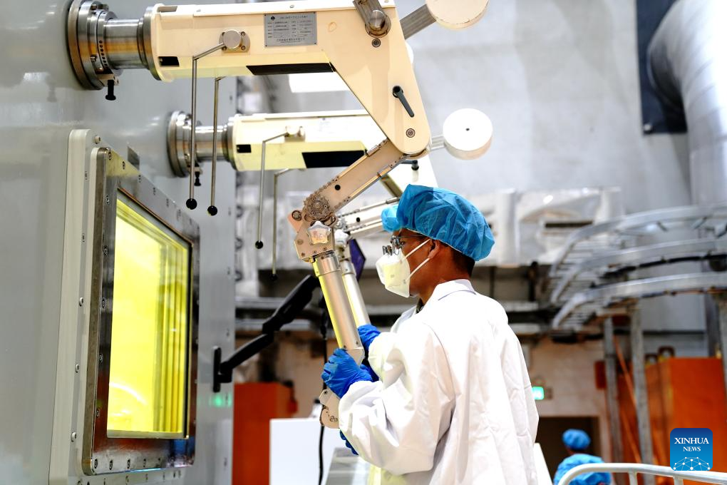 A researcher works at the charging-sampling hot cell of the experimental Thorium Molten Salt Reactor at the Wuwei campus of the Chinese Academy of Sciences' Shanghai Institute of Applied Physics in Minqin county of Wuwei city, Northwest China's Gansu province, Oct 24, 2025. [Photo/Xinhua]