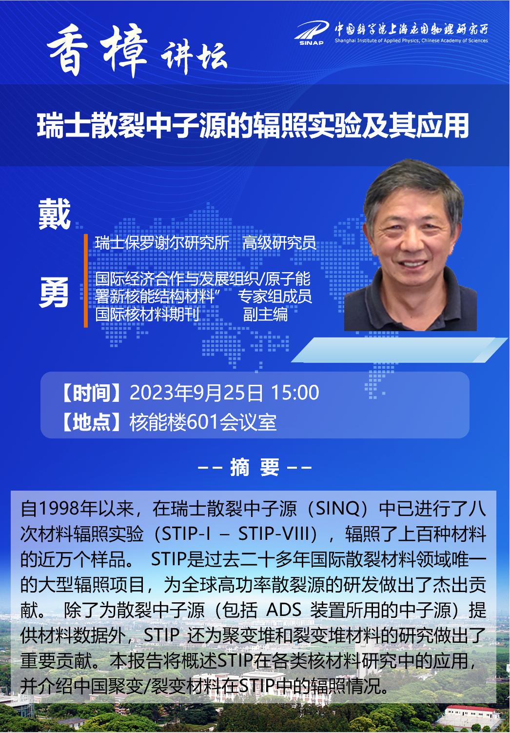 报告题目:瑞士散裂中子源的辐照实验及其应用