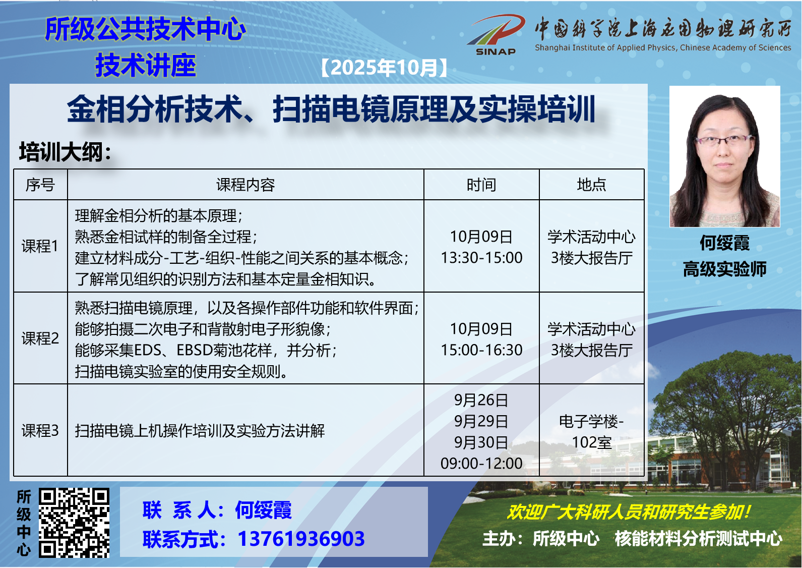 技术讲座:金相分析技术、扫描电镜原理及实操培训