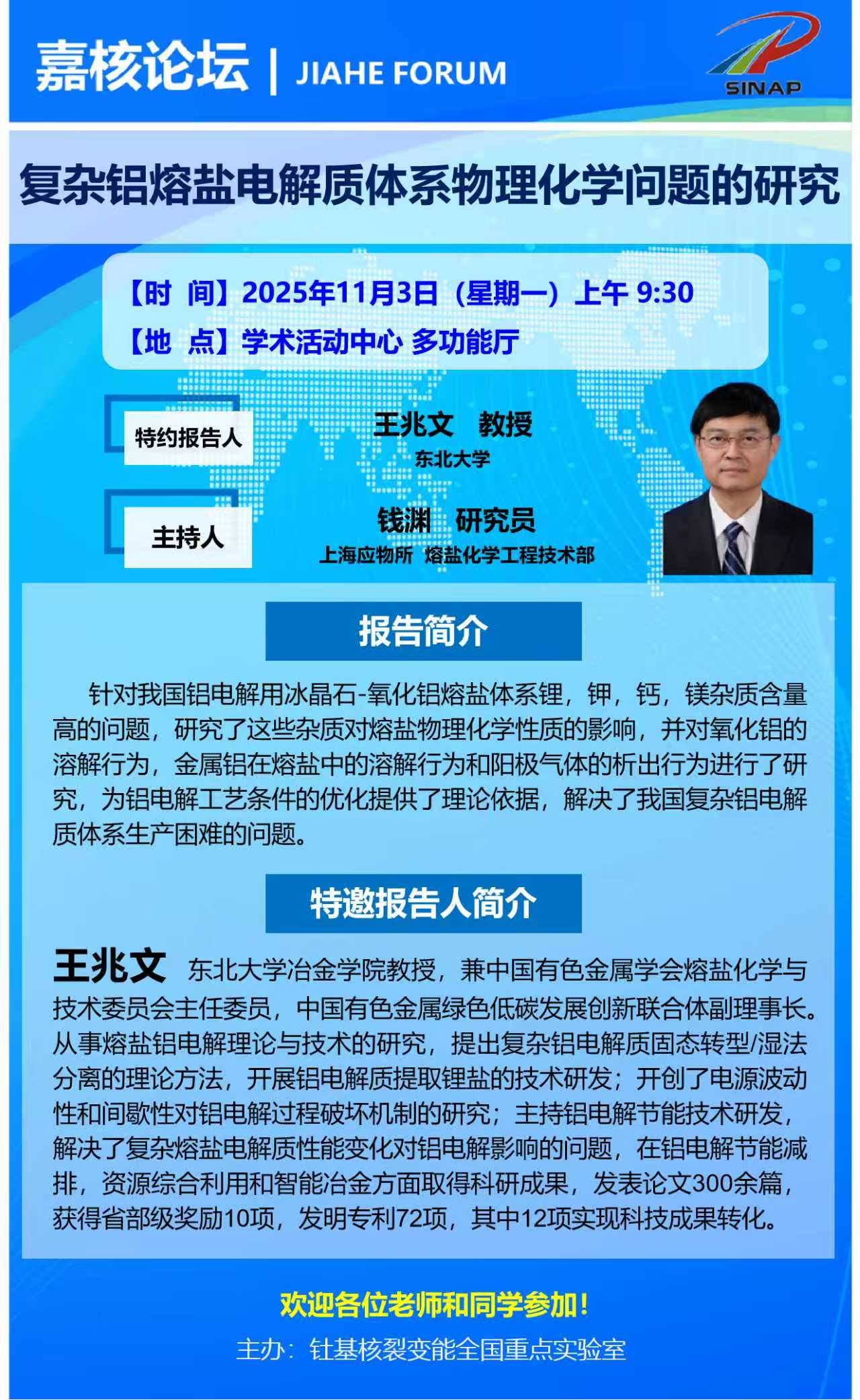 嘉核论坛:复杂铝熔盐电解质体系物理化学问题的研究