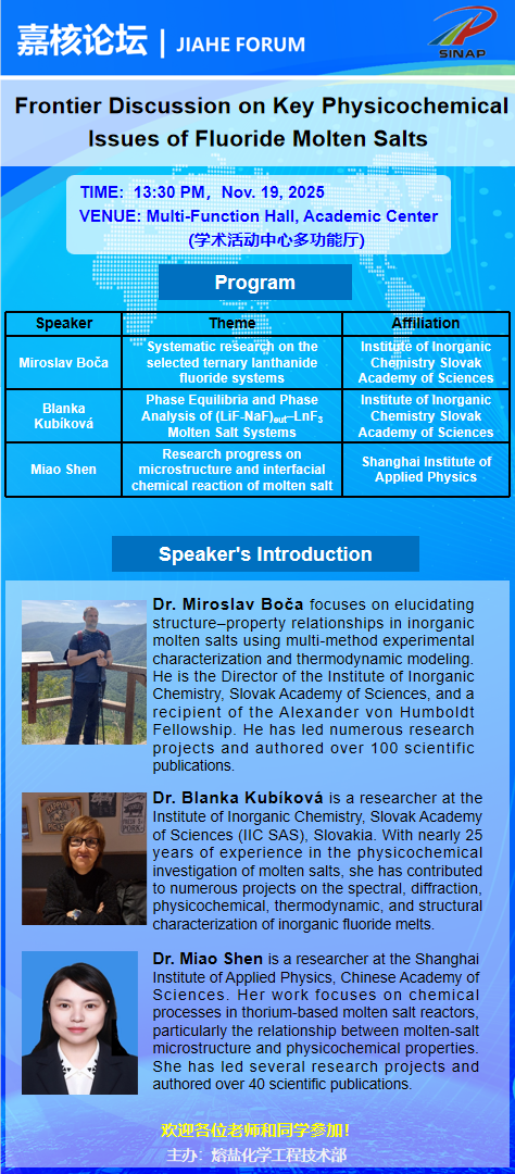 嘉核论坛:Frontier Discussion on Key Physicochemical Issues of Fluoride Molten Salts