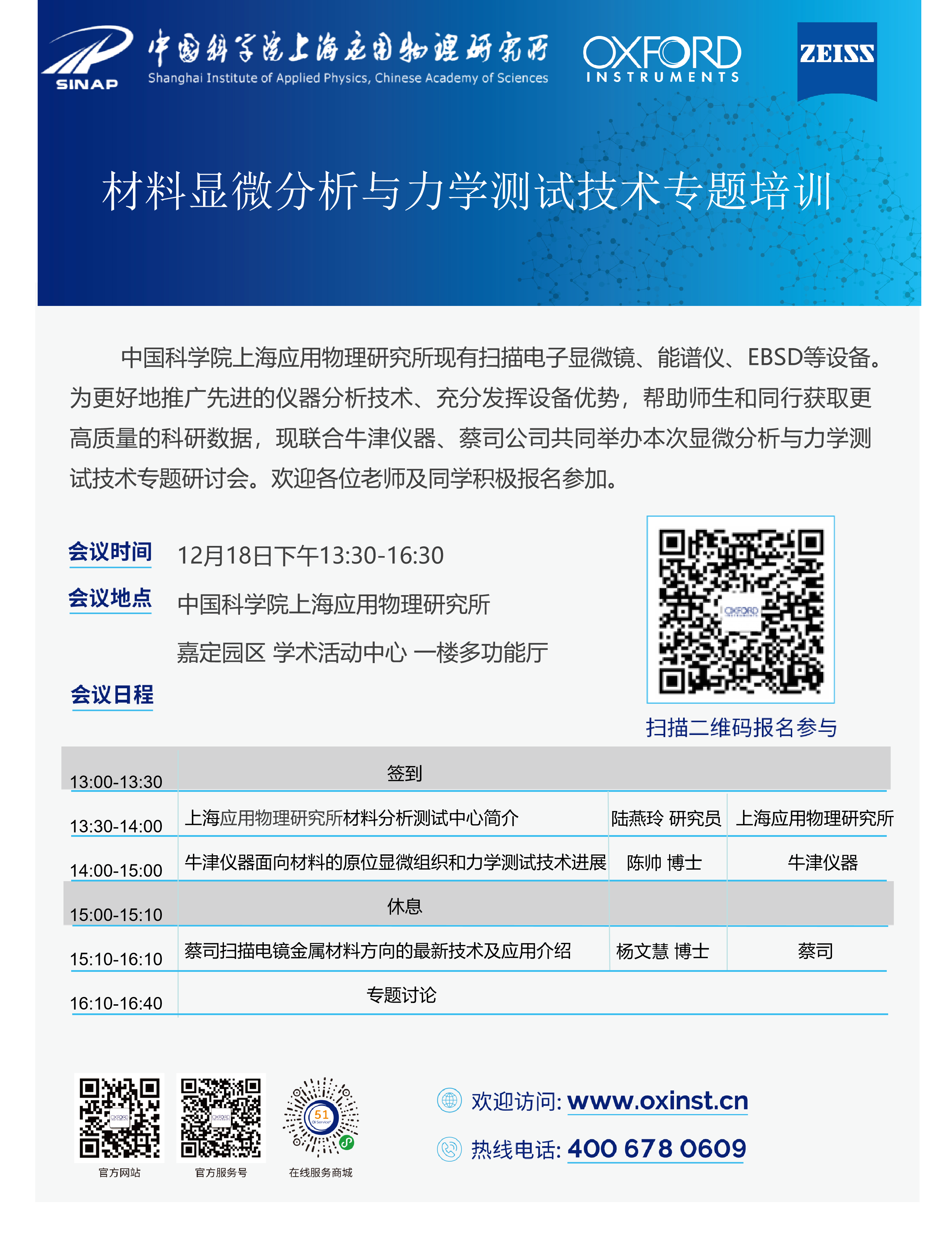 技术讲座:材料显微分析与力学测试技术专题培训