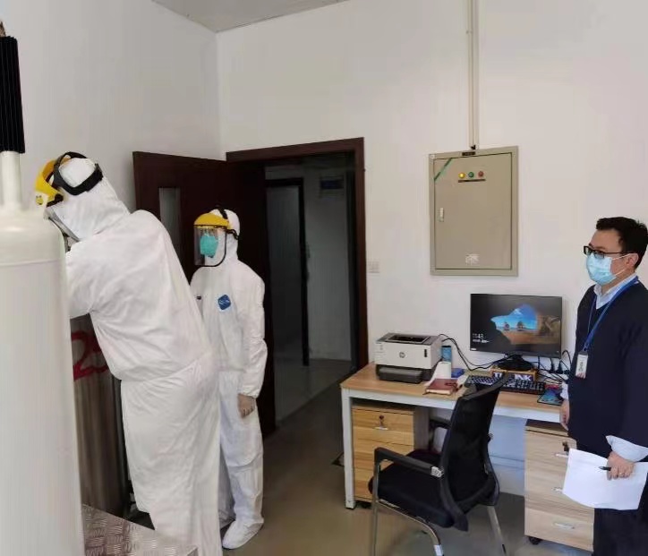 热工大楼腐蚀工艺系统是我所重要的实验平台,也是实验堆运行操纵员培训不可或缺的实验装置。从春节至3月,上百位科研人员将装置调试至可操作状态,希望疫情封控解除后将第一时间培训实验堆操纵员,以满足完成重大科研任务的需求。疫情防控临时工作组进驻园区后,立即查看实验装置的保护气体使用情况,在得知存量气体只够支撑到4月5日后,迅速与有关科研人员联系,相互配合支持,多方联系气体公司并第一时间上报领导和疫情防控领导小组,尽最大努力,落实气体公司,并于封控前的3月31日早6点30顺利完成了对热工大楼腐蚀工艺系统的液氩补充工作,确保在封控期间该实验装置能够安全运行。