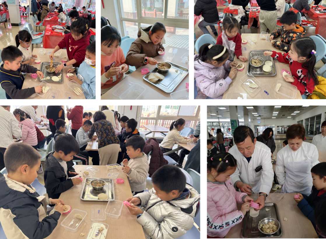 随后的“迎新春 包饺子”劳动实践中,孩子们在老师和志愿者的指导下,兴高采烈地动手体验。他们用小手认真地做出形状各异的饺子——有的认真捏出整齐的褶边,有的用力把饺子边挤紧,还有的发挥创意,包出了小笼包、三角包等充满想象力的造型。孩子们在协作中体验劳动乐趣,感受“自己动手、丰衣足食”的成就感。不少孩子兴奋地表示:“第一次包饺子,真是太开心了!”现场其乐融融,暖意浓浓。