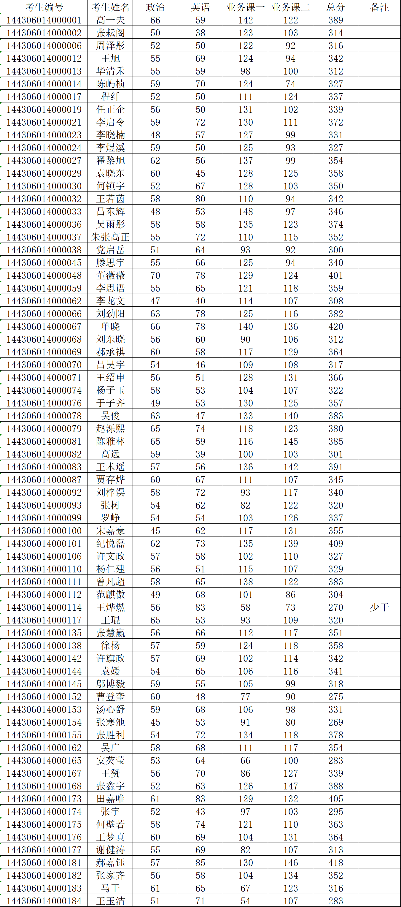2、 各复试小组分专业根据“入学考试总成绩”由高至低排序录取;
