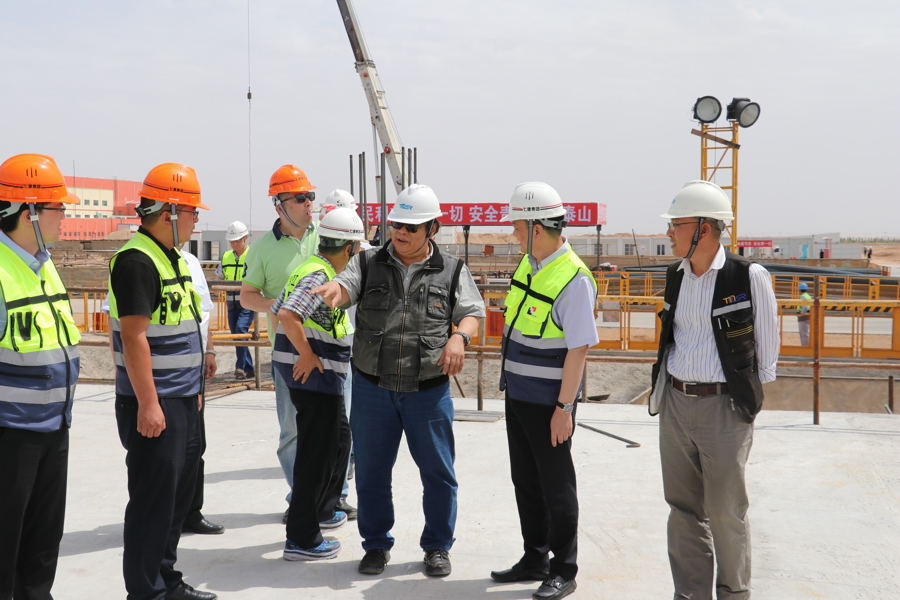 徐洪杰(右三)在钍基熔盐实验堆工地上(上海应物所提供)