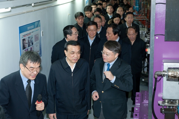 2月17日下午,在上海考察工作的中共中央政治局常委、国务院副总理李克强,在中共中央政治局委员、上海市委书记俞正声等陪同下,来到上海应用物理所张江园区,视察上海同步辐射光源,详细了解这一大科学装置的建设、运行和发挥多学科研究平台作用的情况。