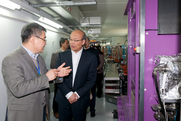 在上海应物所张江园区,上海应物所所长、上海光源国家科学中心(筹)主任赵振堂介绍了上海应物所的概况,重点汇报了上海光源大科学装置、钍基熔盐堆核能系统等重大科研项目的实施情况。随后,王恩哥一行实地察看了上海光源大科学装置,听取了赵振堂关于直线加速器、增强器、电子储存环的介绍,在光束线实验站听取了上海光源首席科学家徐洪杰对线站运行开放成果的介绍。调研中,王恩哥详细了解了上海光源大科学装置的建设运行和发挥多学科研究平台作用等相关情况,对上海应物所在大科学装置的运行开放、先进核能研发以及在凝聚和培养人才方面发挥的重要作用表示了充分肯定。