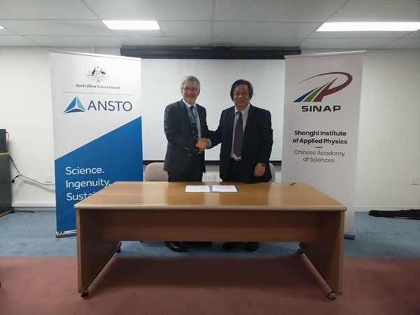 2019年3月14日,中国科学院上海应用物理研究所(SINAP)徐洪杰研究员带领科技团队访问了澳大利亚核科学与技术组织(ANSTO),并与ANSTO组织代表、首席执行官(CEO)Adi Paterson签署合作备忘录。