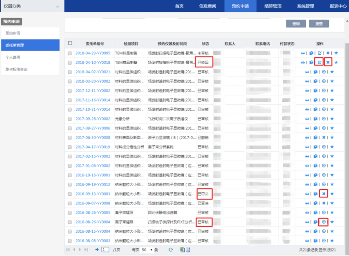 2)已驳回:可在预约单右侧点击修改,进入委托单编辑页面,按照提示修改预约单后,重新提交。