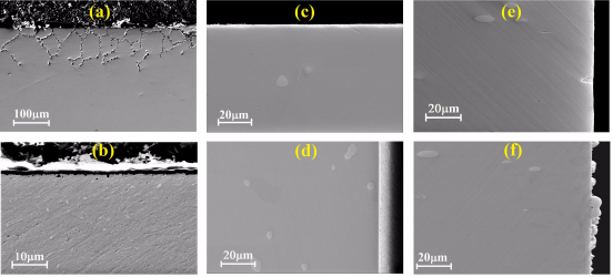 (f)GH3535在腐蚀性调控LiF-NaF-KF熔盐回路冷端腐蚀5000小时的截面SEM图
