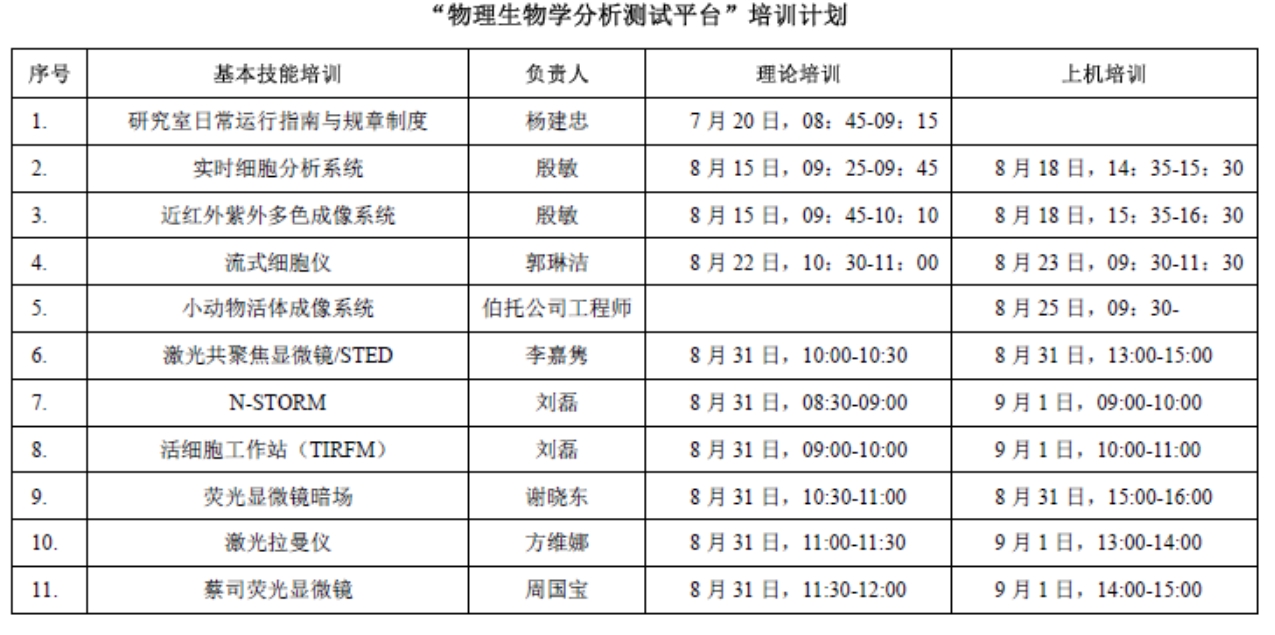 关于举办“物理生物学分析测试平台”培训的通知