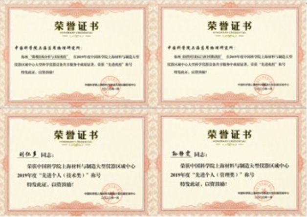 关于荣获2019年度上海材料与制造大型仪器区域中心先进机组和个人称号的通知