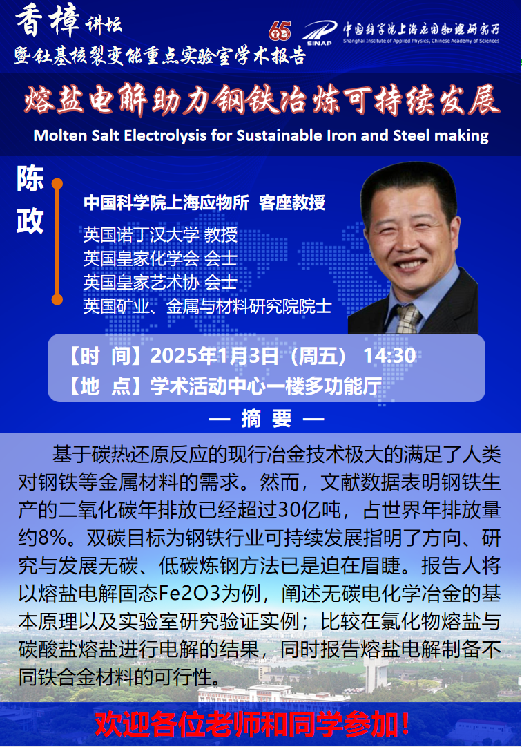 香樟讲坛:熔盐电解助力钢铁冶炼可持续发展