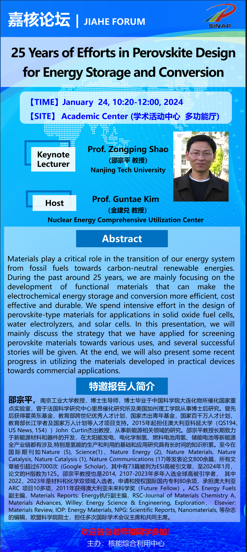 嘉核论坛:25 Years of Efforts in Perovskite Design for Energy Storage and Conversion