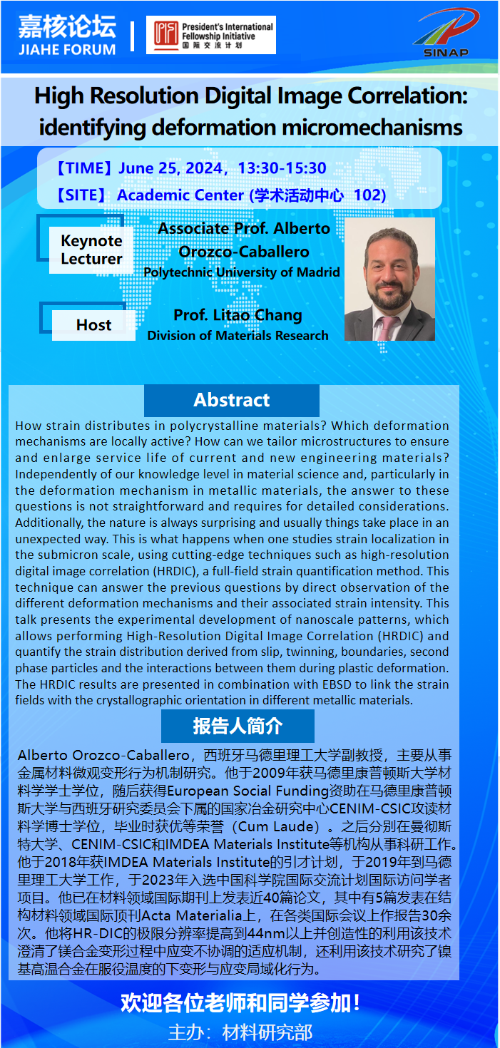 嘉核论坛:High Resolution Digital Image Correlation:identifying deformation micromechanisms