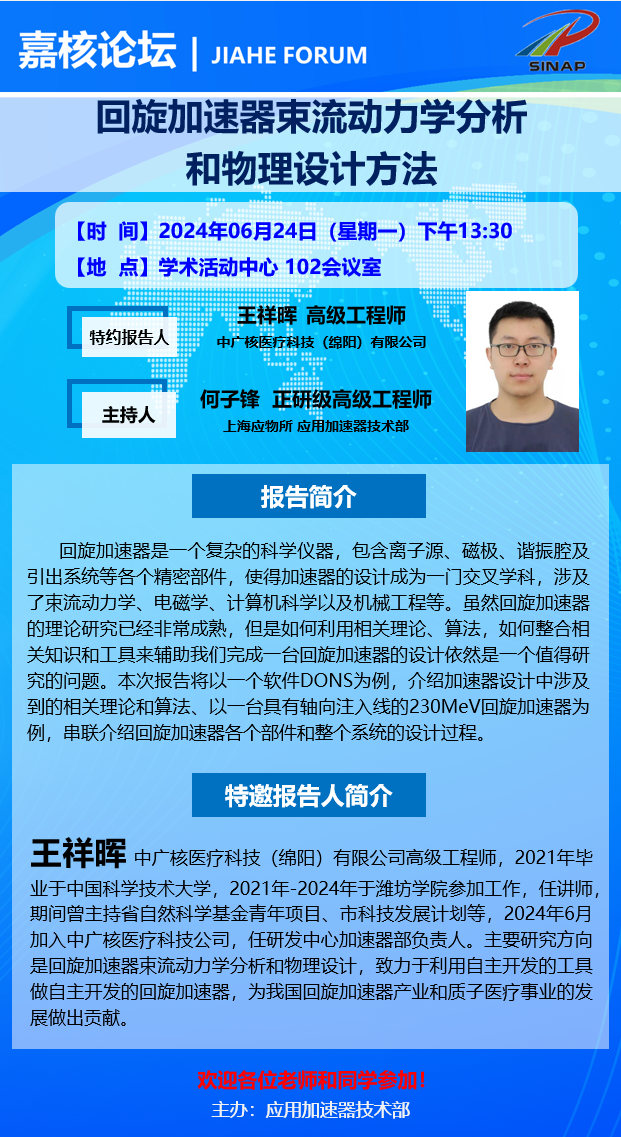 嘉核论坛:回旋加速器束流动力学分析和物理设计方法