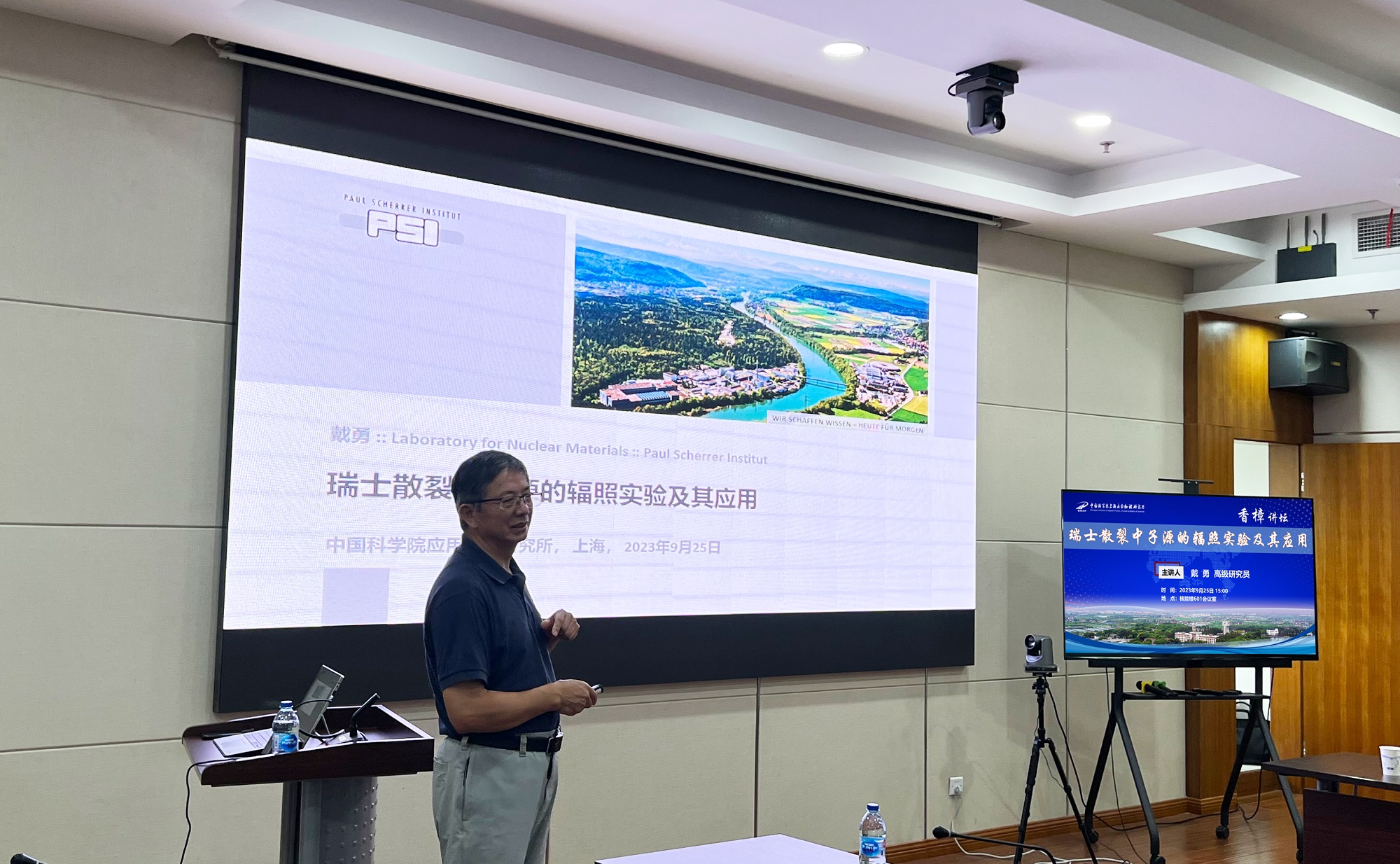 2023年9月25日,中国科学院上海应用物理研究所成功举办香樟讲坛,本期讲坛邀请了瑞士保罗谢尔研究所(PSI)的戴勇高级研究员担任主讲人。上海应物所党委副书记、纪委书记王茂华,党委委员、材料研究部主任黄鹤飞,核能材料科学与技术教研室主任周兴泰,科研教育处副处长任翠兰,科研骨干和研究生等五十余人参加活动。活动由黄鹤飞主持。