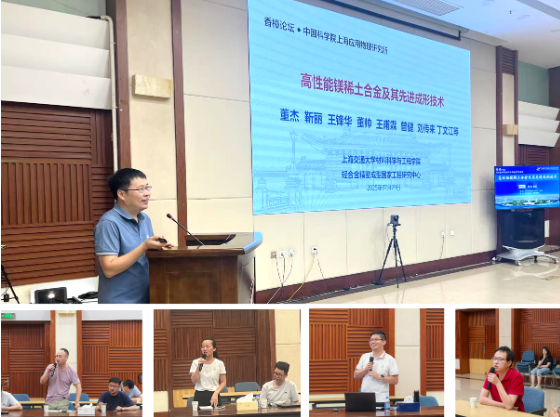 董杰教授主要从事高性能变形轻合金材料及其精密塑性成形和腐蚀防护等研究工作,研发了具有国际领先强度水平的变形稀土镁合金材料及其成形技术,研制了100多种轻合金塑性变形产品,并在新能源汽车、航空座椅、飞行器等领域得到了广泛应用。本次讲坛中,董杰教授作《高性能镁稀土合金及其先进成形技术》主旨报告,系统阐述了高性能镁合金在材料设计、成形工艺、表面防护等关键技术领域的研究进展,深入分析了该领域的未来发展趋势。互动环节,与会人员就合金成分设计、强化机制、铸造工艺及力学性能评价等方面与董杰教授开展了深入探讨。活动最后,董杰教授勉励青年科研人员要积极开展多学科交叉合作,聚焦国家重大战略需求中的高端制造关键技术难题进行攻关突破。