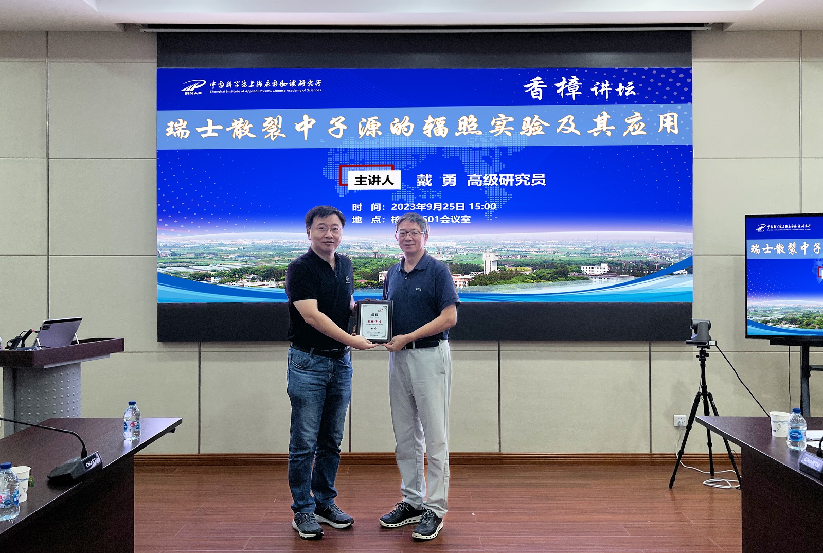 2023年9月25日,中国科学院上海应用物理研究所成功举办香樟讲坛,本期讲坛邀请了瑞士保罗谢尔研究所(PSI)的戴勇高级研究员担任主讲人。上海应物所党委副书记、纪委书记王茂华,党委委员、材料研究部主任黄鹤飞,核能材料科学与技术教研室主任周兴泰,科研教育处副处长任翠兰,科研骨干和研究生等五十余人参加活动。活动由黄鹤飞主持。